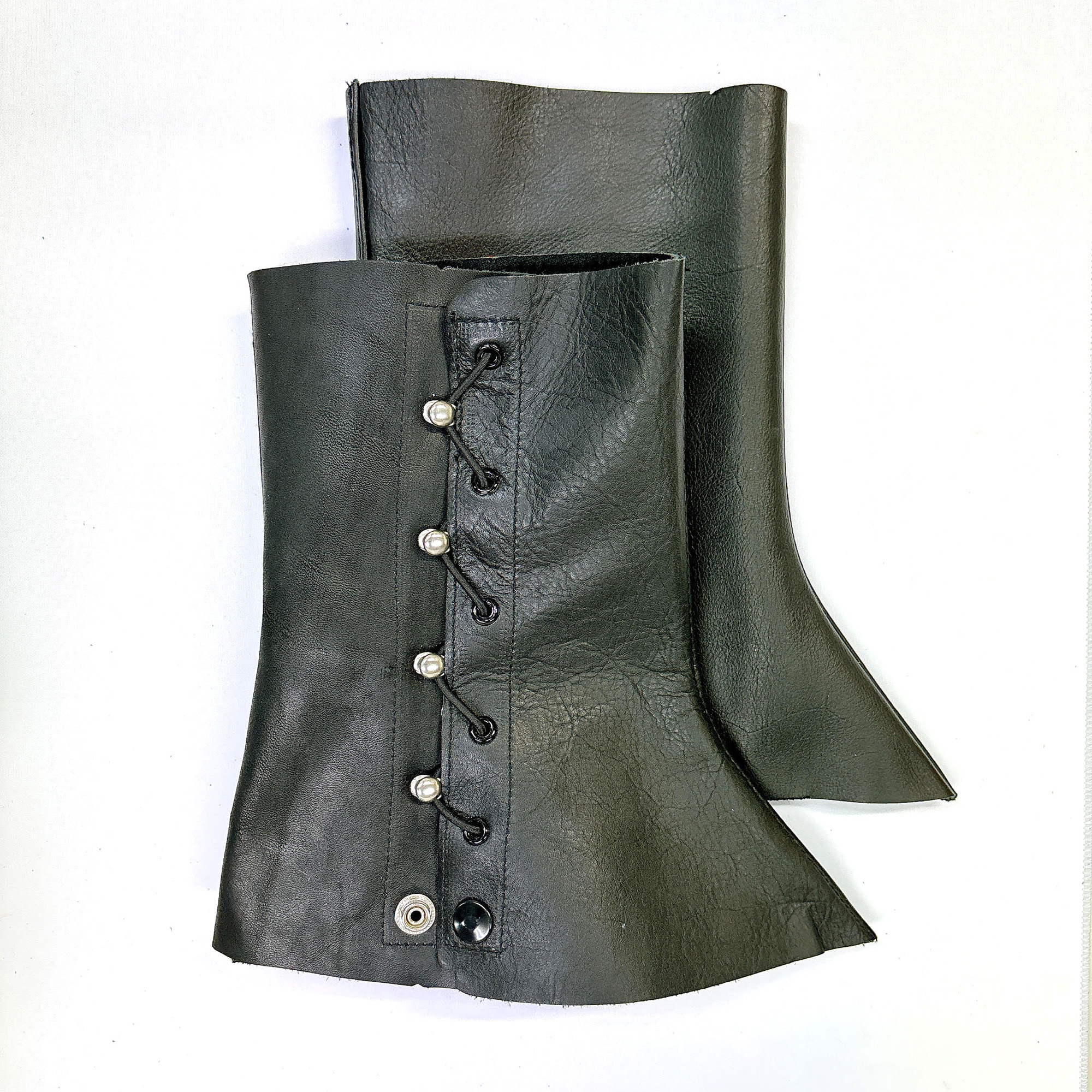 受注生産品 国産黒表革足カバー(ゴム・フック式) サイズ フリー 高さ250mm ふくらはぎ周囲330mm 素材 国産牛表革 製品紹介 国産表革使用、耐久性、耐熱性に優れ、火の粉から足首と靴を守ります。 ご希望のサイズ・仕様の注文も可能です。 主な用途 熔接など
